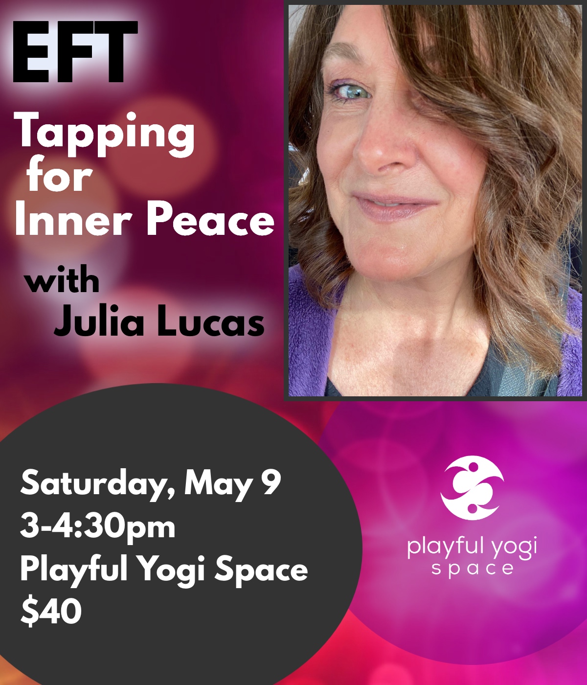 In a chaotic world, inner peace is not a luxury — it’s a skill to cultivate. In this experiential workshop, Julia guides you through meditation and EFT (Emotional Freedom Techniques) Tapping to help slow down, soften, reduce anxiety, shift limiting beliefs and restore emotional balance. You’ll leave with practical tools you can use anytime to create more peace in your daily life and find steadiness no matter what is happening around you.